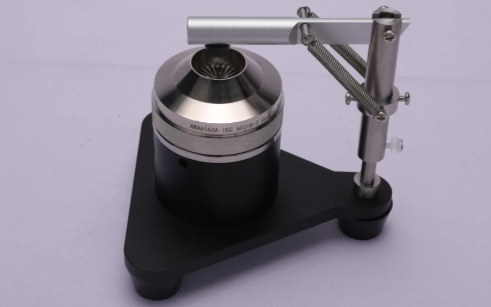 AWA6163型是用于在125 Hz至8 000 Hz的频率范围内测量压耳式耳机的声耦合器。通常耳机在耦合器中产生的声压与在人耳中不同,但是,声耦合器可以作为客观且可再现的手段来测量压耳式耳机的输出。它可用于规定听力计的参考等效阈值声压级 (RETSPL)校准。 AWA6163型声耦合器,配合Φ23.77 mm(1英寸)声压型测试电容传声器(AWA14412型)和前置放大器(14601B型)使用。 符合GB/T 25498.3—2010和IEC 60318-3:2014(原IEC 303)《电声学 人头模拟器和耳模拟器 第3部分:校准压耳式测听耳机用声耦合器》标准,有时又称作IEC 303仿真耳或NBS9A,由于耦合腔容积为5.78 cm³,所以通常又称为6cc耦合器。 除用于带 TDH -39带平耳垫压耳式耳机的听力计校准,也可用于受话器、电话机等电声特性测试,类似B&K4152型6cc声耦合器。