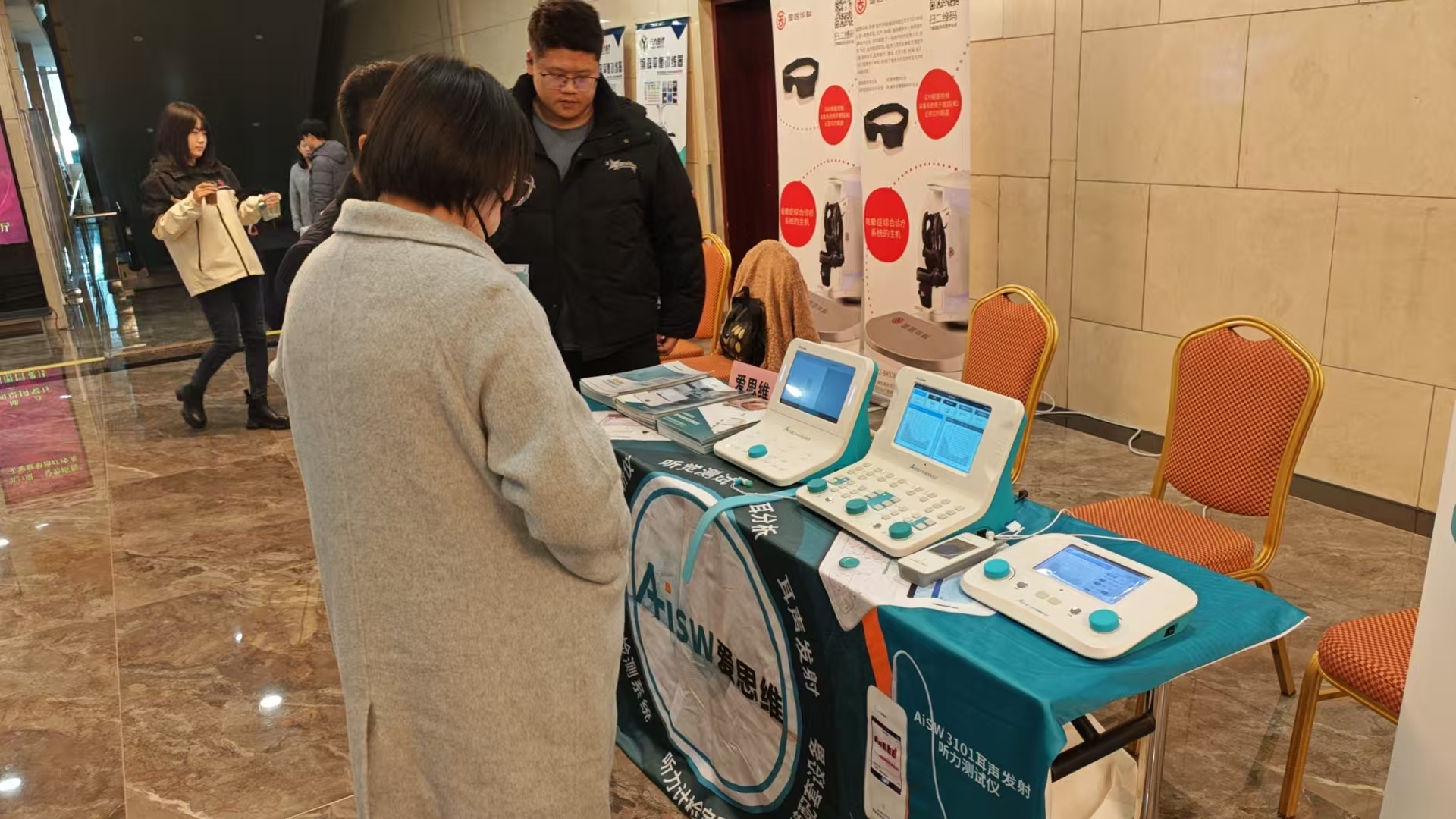老师们对于听力计、听力筛查仪等一系列产品很感兴趣,纷纷上手操作后表示操作简单、测试便捷,领取了相应的宣传介绍册后,提出了一些使用上的改进建议。对于使用者们的即时反馈我们记录下回到公司讨论后,选择性采纳。