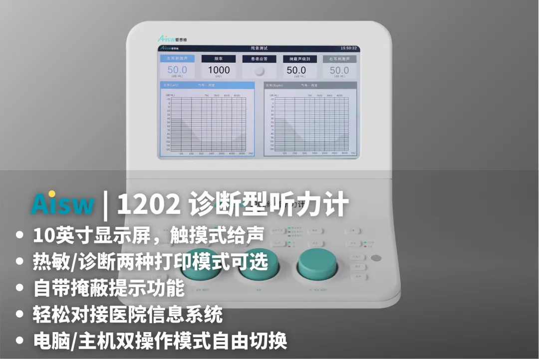 本次会议,我们带来了公司目前最成熟的诊断型AiSW1202临床纯音听力计,已受到多家医疗单位选择的AiSW2101中耳分析仪,以及刚刚与大众见面的耳声发射AiSW3201。