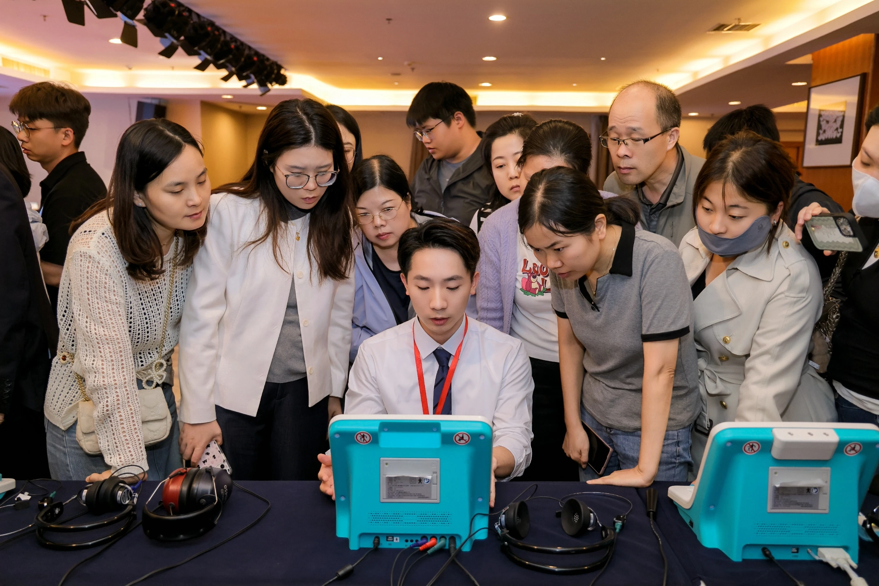 本次会议上,爱思维携旗下三款核心产品亮相:目前II型诊断听力计AiSW1202、已获多家医疗机构采用的中耳分析仪AiSW2101,以及全新推出的耳声发射仪AiSW3201。在实操环节,专家进行了现场演示,有效提升了产品的公众关注度。我们也借此机会认真聆听各位专家老师对产品的意见反馈,以不断提升产品质量,优化用户体验。
